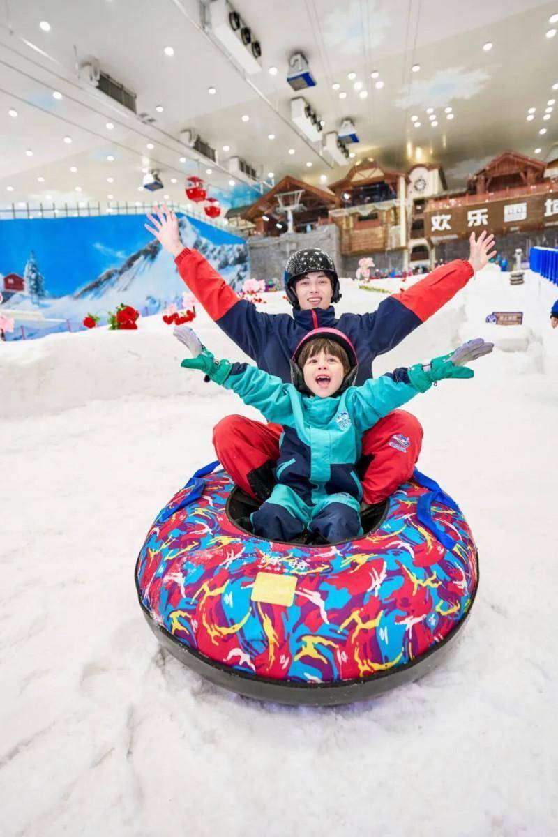 走进其中,可以发现雪场做到了全龄适配、专业与趣味兼具。8000㎡的专业初中级滑雪道,长130米、宽60米的宽敞空间,足以同时满足单双板滑雪爱好者、初学者及专业选手的需求;而娱雪区则是全年龄段的欢乐海洋,这里拥有11条涵盖直线型、曲线型、波浪型、S型等多种类型的玩雪滑道,是国内娱雪滑道最多、体验最丰富的室内冰雪世界之一;更有1200㎡的美丽冰湖,冰上自行车、小雪橇、冰湖碰碰车等设施一应俱全,Q萌的碰碰车更是备受青睐,冰面上的滑行、旋转与碰撞,总能引来阵阵尖叫与欢笑。更贴心的是,滑雪门票包含头盔、雪服、雪具、雪鞋(单板、双板二选一)等全套专业装备,无需额外付费租赁,园区还提供基础滑雪指导,让新手也能轻松入门。